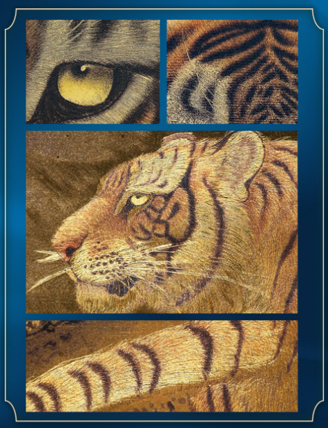 如今,高伟大师的代表作《君王》、《威震山河》,以金银为载体,融入生肖虎的吉祥寓意,独创生肖金银画,千百年来,开创中国虎画之先河!
