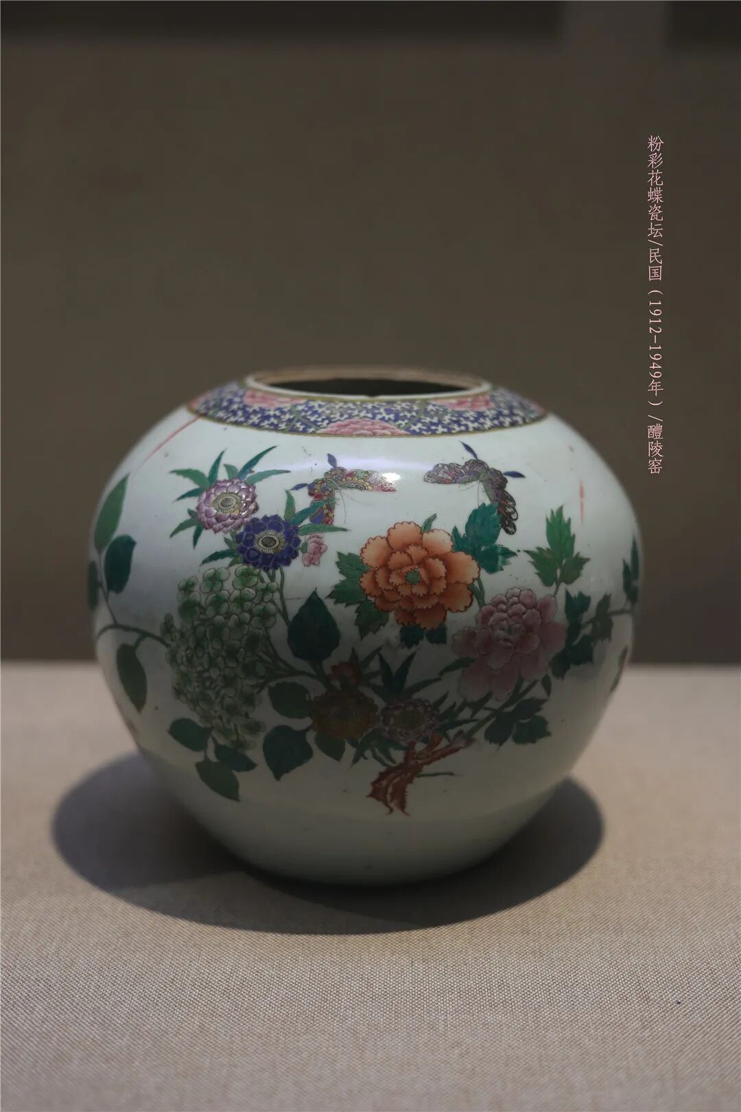 在市博见到的第二件惊艳之作,第一眼扫过去就觉得与其余的展品非常不一样,颜色搭配极其素雅,瓶身白净,淡雅的粉绿,总觉非常眼熟,脑中联想到的第一件事物就是旗袍。低头一看简介得知是民国时期的作品,心想:果然。