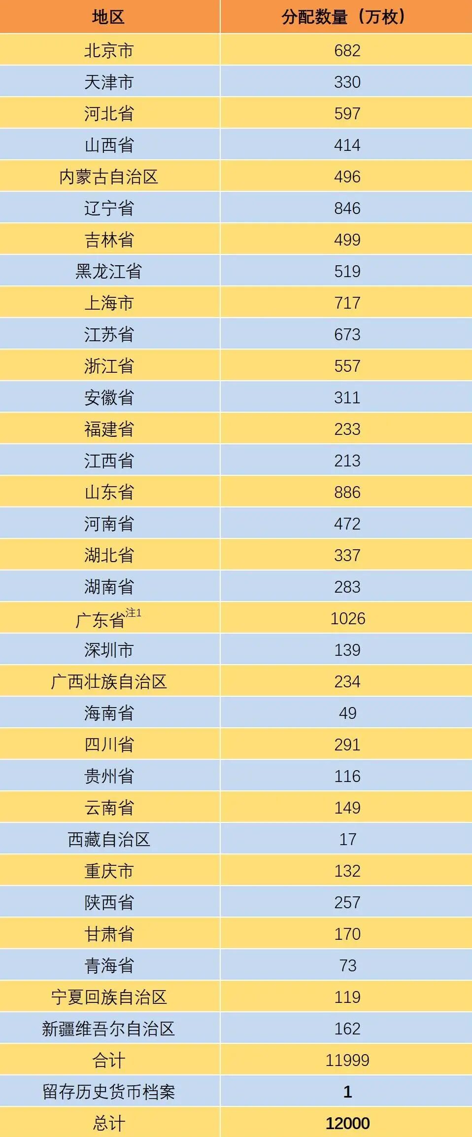 虎币缩量发行,分配到各地的可预约数量也变少了,大家快来看看自己地区分配到了多少枚。