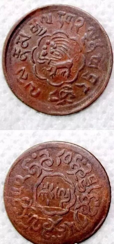 藏历15-54年(1920年)嘎琁(小五分)铜币