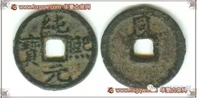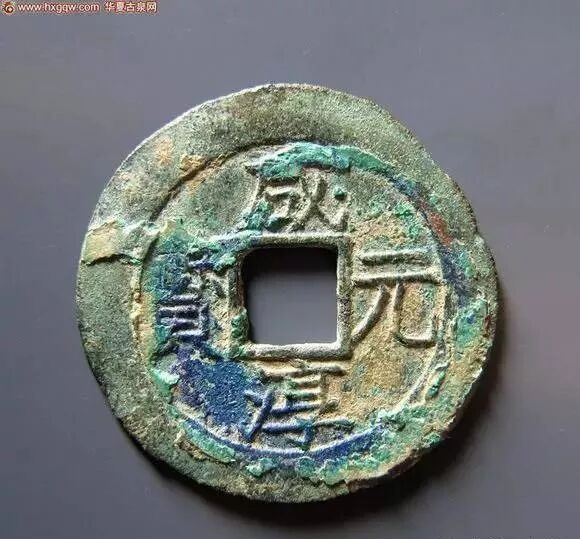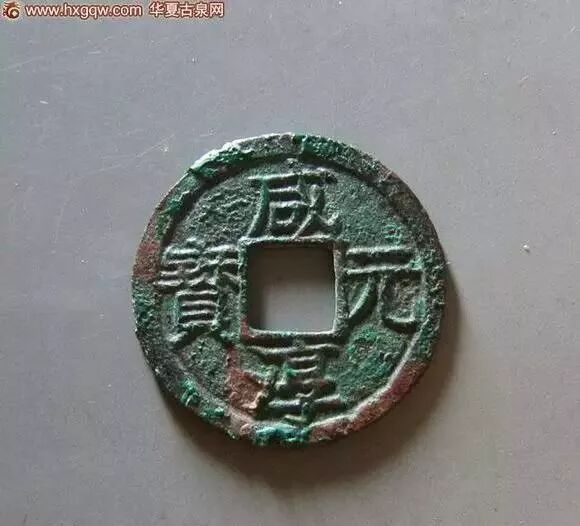南宋度宗咸淳年间(公元1263~1274)铸,有小平、折二两种,因南宋恭帝以后未见铸钱,故此为宋代最后一种铸钱。咸淳元宝铸造不精,小平、折二背记年(元至八)市场价格在30元左右,近年新发现折二背“九”铜钱,直径较一般折二为大,应属试铸,罕见。