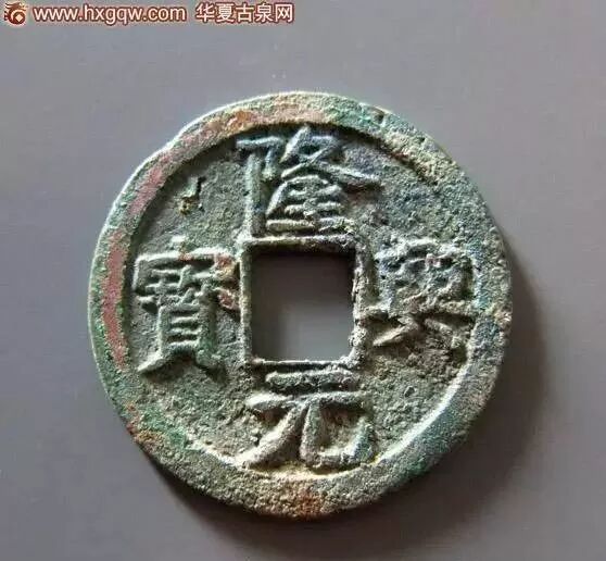 南宋孝宗赵昚隆兴年间(公元1163~1164)年间铸,铜钱仅见折二,铁钱有小平, 隆兴元宝存世较建炎、绍兴少见,品好者难觅,目前折二铜钱市场价格在150元左右,另见一种隆兴元宝金质小平,系赏赐钱,非行用品。隆兴通宝铁钱存世少见,目前市场价格在1000元左右,但真品难觅。隆兴重宝为孤品。