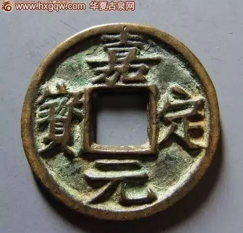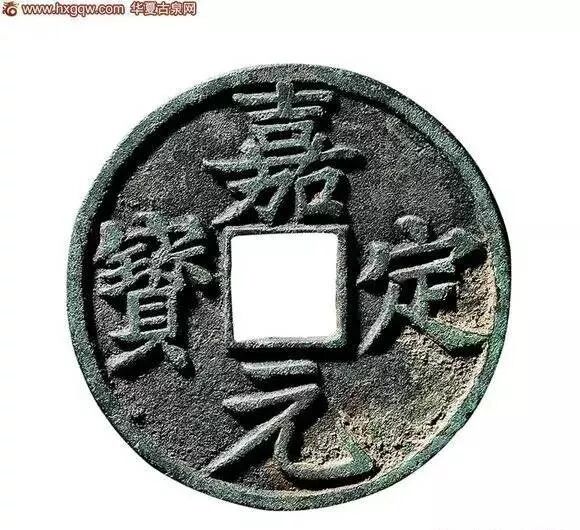 南宋宁宗嘉定元年(公元1208年)铸,仅见折五铁钱,较为稀见,目前仅发现一种,因是铁钱,知名度较低,但实际殊不易得。