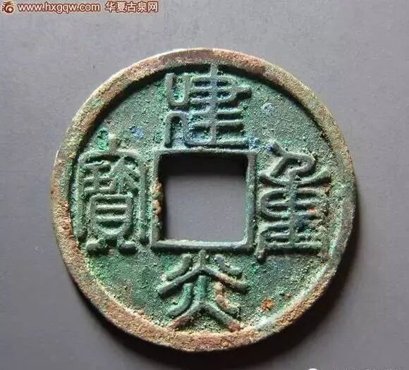南宋高宗建炎年间(公元1127~1130年)铸,仅见折三篆书一种,建炎重宝较为少见,铸造亦较精美,目前市场价格在7000元左右。