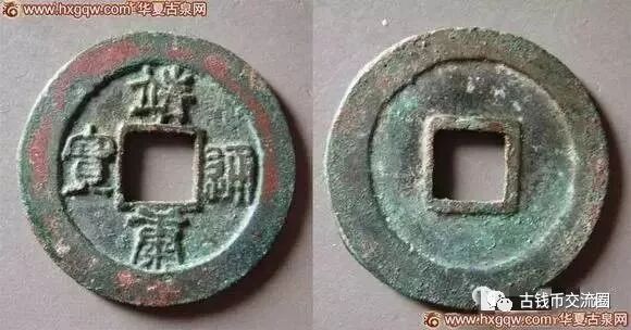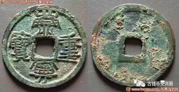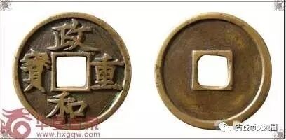 宋徽宗重和元年 (公元1118年)铸,仅见篆、隶小平对钱,铸造时间短,较为少见。重和通宝铸造精美,篆、隶成对,仅见一种版式,是北宋钱的名誉品之一,目前市场价格在1~2万元。