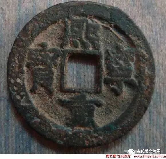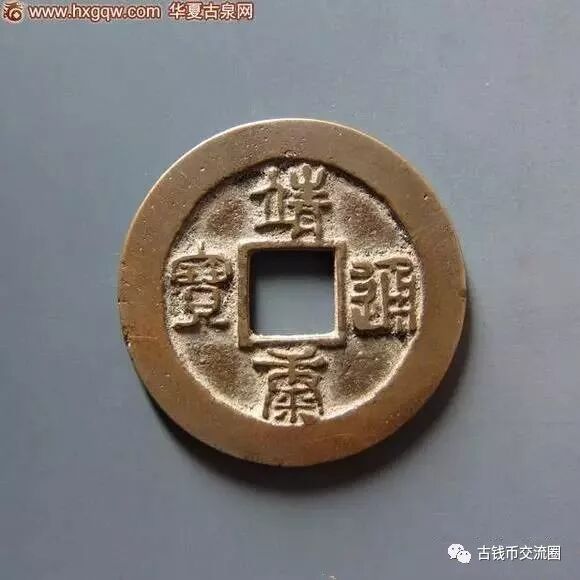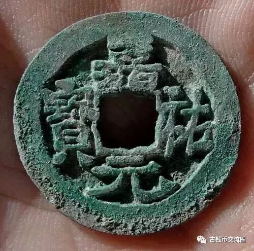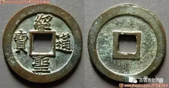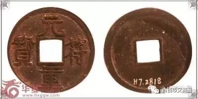 宋哲宗赵煦,元佑年间(公元1086年~1093年)铸造。有小平、折二,铜、铁均有,铸造量大,版式众多。普通版市场价格2元左右,小平背陕少见,有行书、篆书对钱,市场价格在1~2万元,折二铁母市场价格在2万元左右,折二铁钱存世较多。