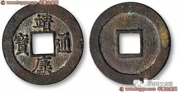 北宋仁宗嘉佑年间(公元1056~1063年)铸行,仅见小平钱,有楷书、篆书对钱,同时还铸有嘉佑元宝。