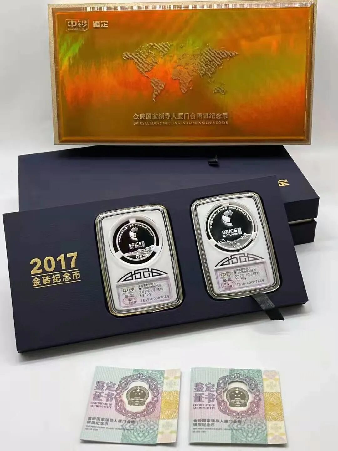 今天,小藏给大家带来一套少见的藏品:2017金砖国家领导人厦门会晤纪念银币套装(封装)。