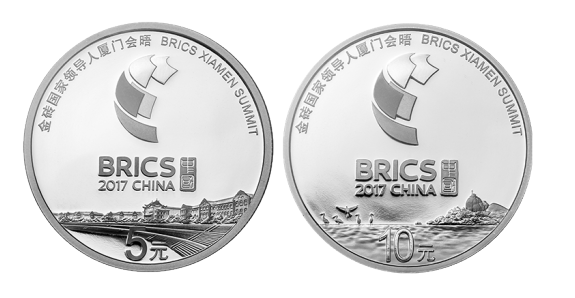为迎接本次会议的召开,中国人民银行于2017年8月28日发行了金砖国家领导人厦门会晤金银纪念币。