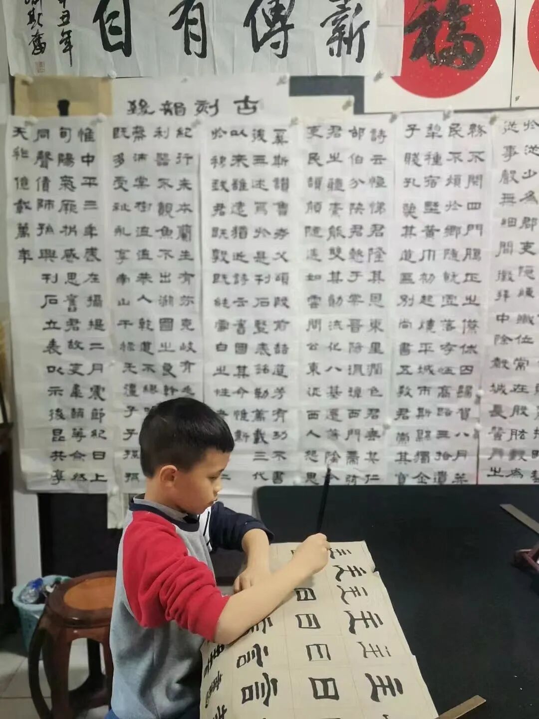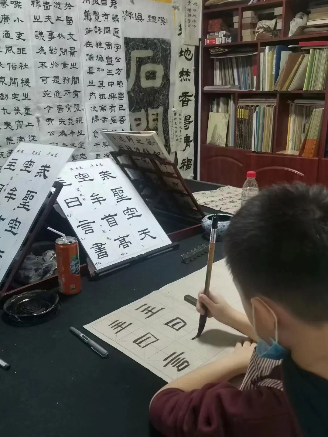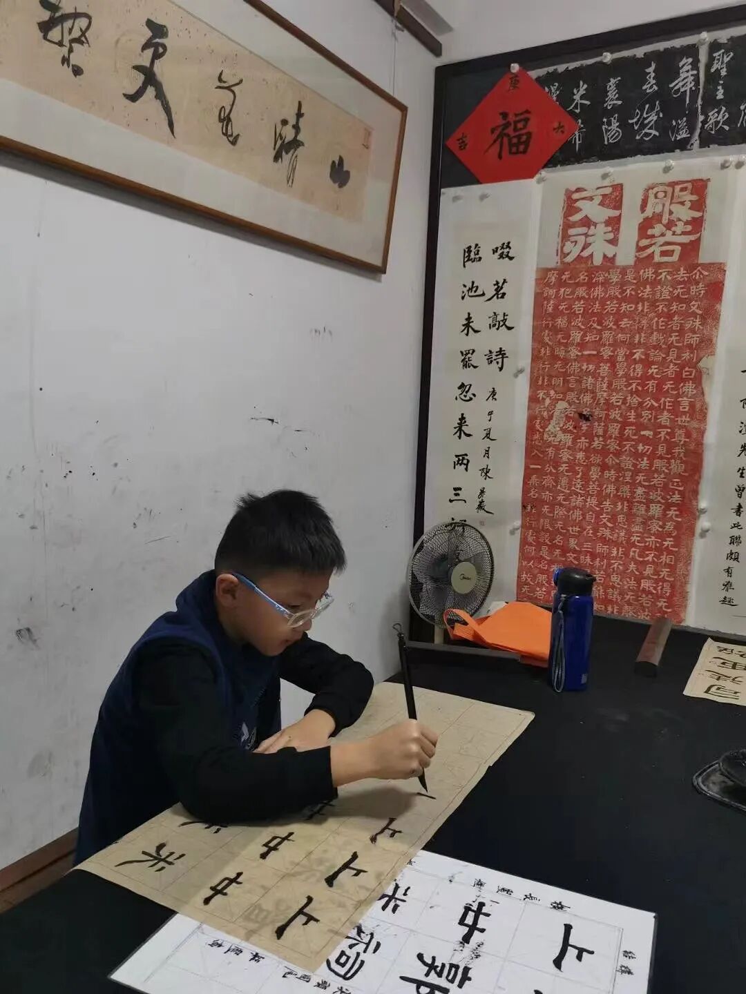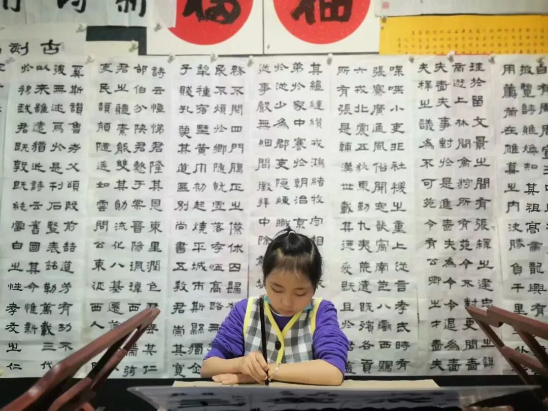 令人欣慰的是,经过私塾式书法教育的学生,在传统文化、传统美学浸染下,通过其他传统文化的学习又能很好地反哺书法学习。学生在临摹字帖、读帖的同时,还要学习书法理论,研究诗词歌赋等,以增加涵养,特别在当下快节奏的生活环境中,以传统文化抚慰人心。同时还能以点带面,让孩子去影响家长,拉进家庭成员的关系;增益良好的家庭氛围……