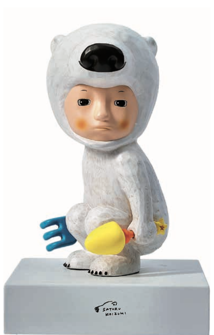 小泉悟,生于日本宫崎县,毕业于冲绳县立艺术大学造 型艺术研究所。艺术家以每个穿着动物服装的孩子的木 雕闻名,作品中无辜的孩子面孔意味着随着年龄的增长,我们往往会失去我们所拥有的东西,作品深入探讨了现 代人将可爱变成武器以弥补不成熟和无力的方式。小泉 通过他的作品研究涉及焦虑和孤独的当代情况,自相矛 盾地表达了自然,动物,人类和社会之间联系的重要性。