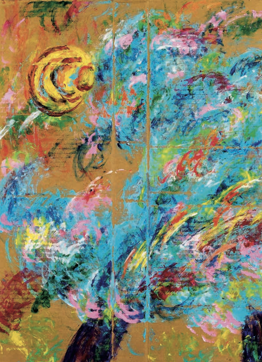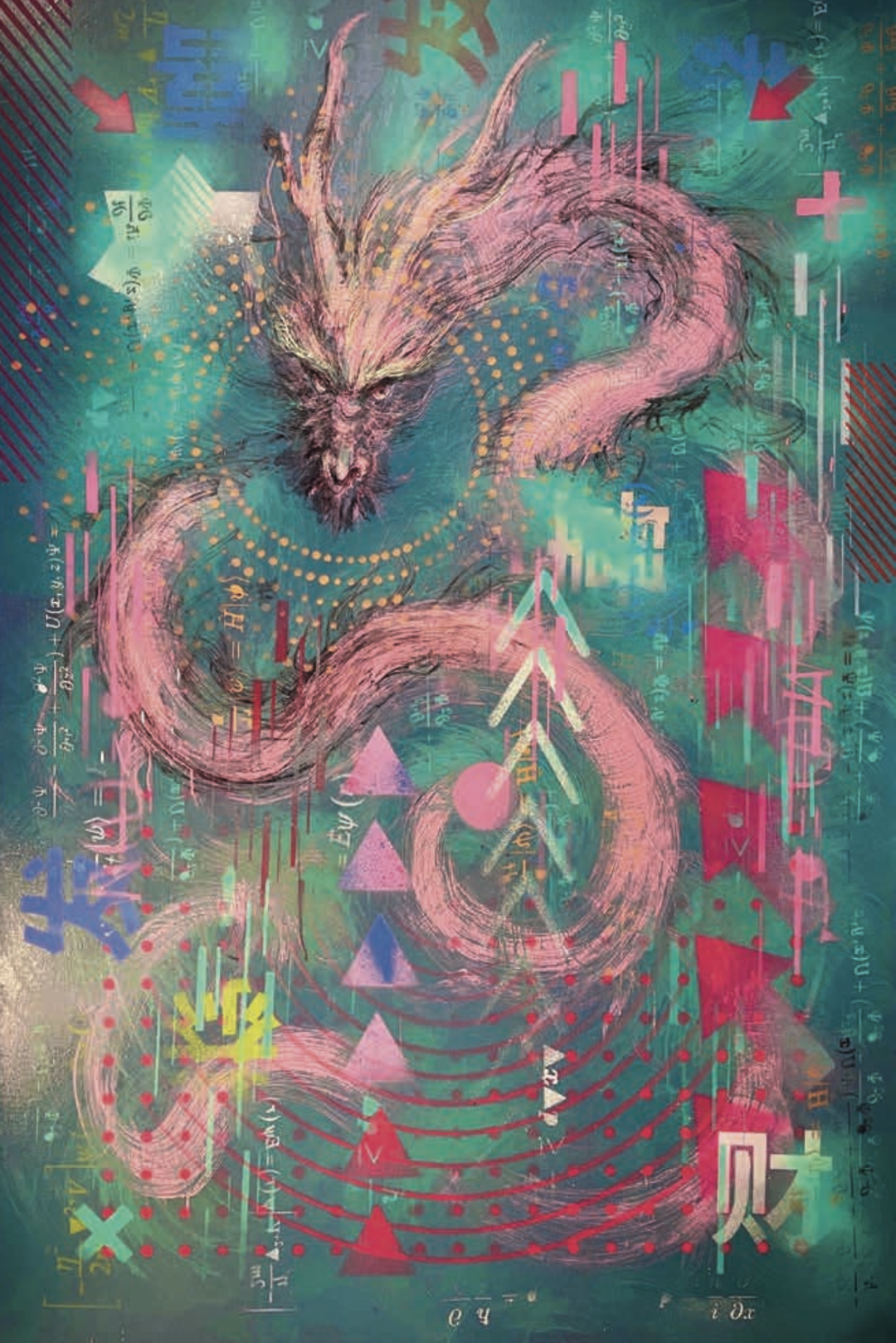 梦境是有序和无序的碰撞 -在诞生和觉醒之初的混沌与混乱 ,梦境跳出框架,这是一幅梦中画,亦或是画中梦;神性与精神有着永恒的统一性 - 神性代表着原初能量和本源意识,而精神是不灭的动力,是从一而终的坚持和前进的动力。