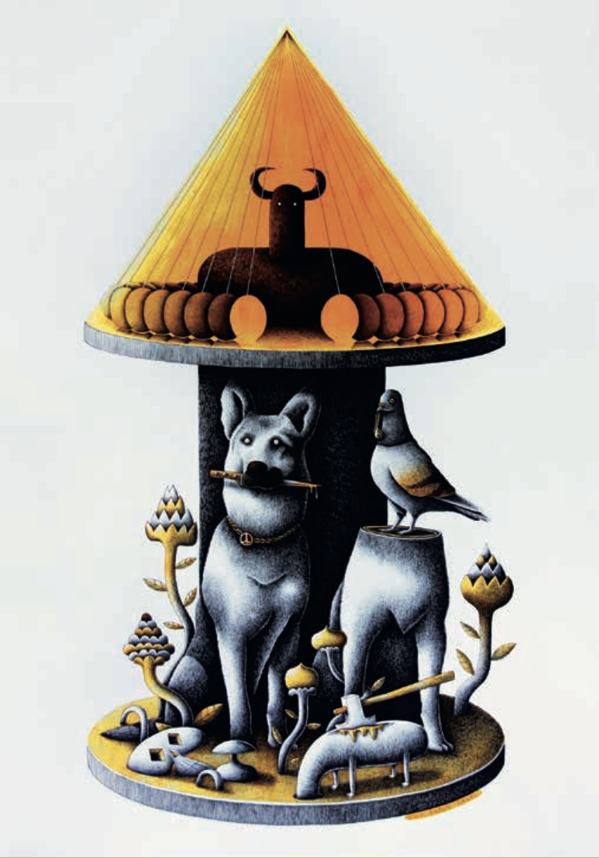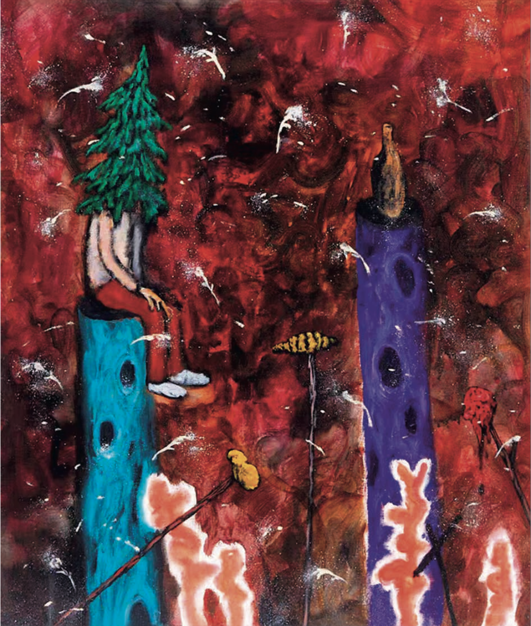 平子雄一,1982 年出生于日本冈山,后毕业于英国温布顿艺术学院,目前主要在东京工作。近几年广泛活跃于国际,法国、美国、荷兰、丹麦、中国等地都有其作品的展出,自 2015 年以来,二级市场也出现其作品身影。在平子雄一的作品中,拟人化的植物,或者说有着植物头部外表的人类,生活在广茂深邃的丛林中。不过他又在作品中引入了室内装饰、汽车、家居等明显的人造主题,并且他描绘的拟人角色有着和人类一样的生活习惯与社交需求,让观众去逆向思考,人类与植物之间的关系。