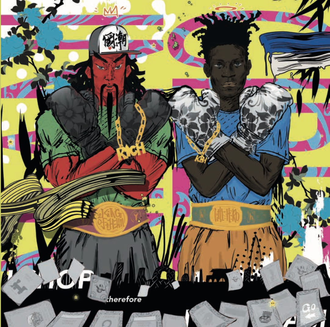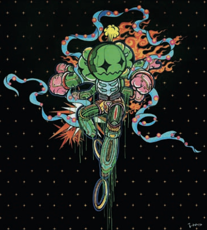 作为当今东京最炙手可热的艺术家之一,他从小就受到父亲(日本著名插画家 -- 天野喜孝)的艺术熏陶开始学习绘画与雕塑。与其父亲不同,天野健经常运用古典主义结合现代化的手法来展现画面,将利落的线条与流行文化中的潮流性元素融合。极简主义的艺术风格和日本在二十世纪后崛起的动漫潮流文化相结合,他希望观众能快速理解自己的作品,而不需要多余的思考。大面积单色背景、简洁的人物关系、明了的人物动态与表情...没有多余的细节,也没有细腻的过渡。用色鲜明活泼,人物有著精简俐落的轮廓线,擅于结合各种标志性元素,创作出俏皮又饶富深意的作品!