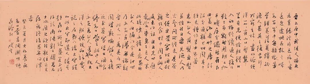 题识:癸未夏月大水,养病多日,尝书陶渊明《桃花源记》,晓云。