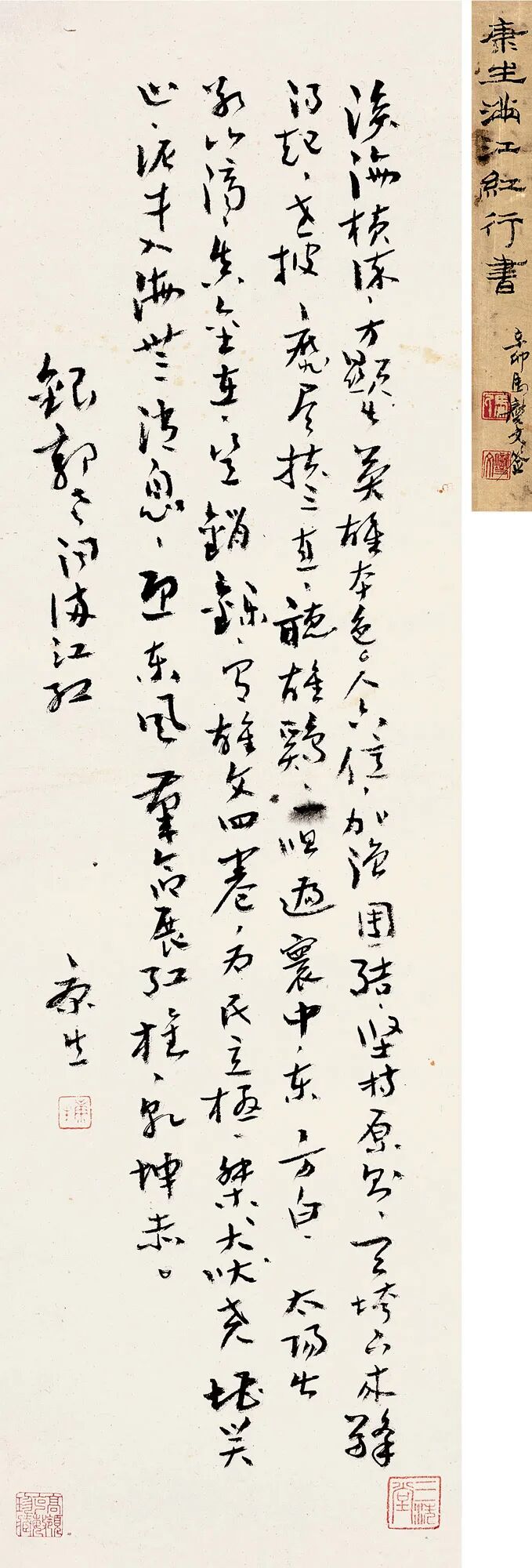 说明:上款人应为况周仪(1859-1926),晚清官员、词人。原名况周仪,字夔笙,号阮庵,别号玉梅词人、玉梅词隐,晚号蕙风词隐,人称况古,况古人,室名兰云梦楼,西庐等。广西临桂(今桂林)人。一生致力于词,尤精于词论。与王鹏运、朱孝臧、郑文焯合称“清末四大家”。著有《蕙风词》、《蕙风词话》,况周仪为著名篆刻艺术大师陈巨来岳丈。