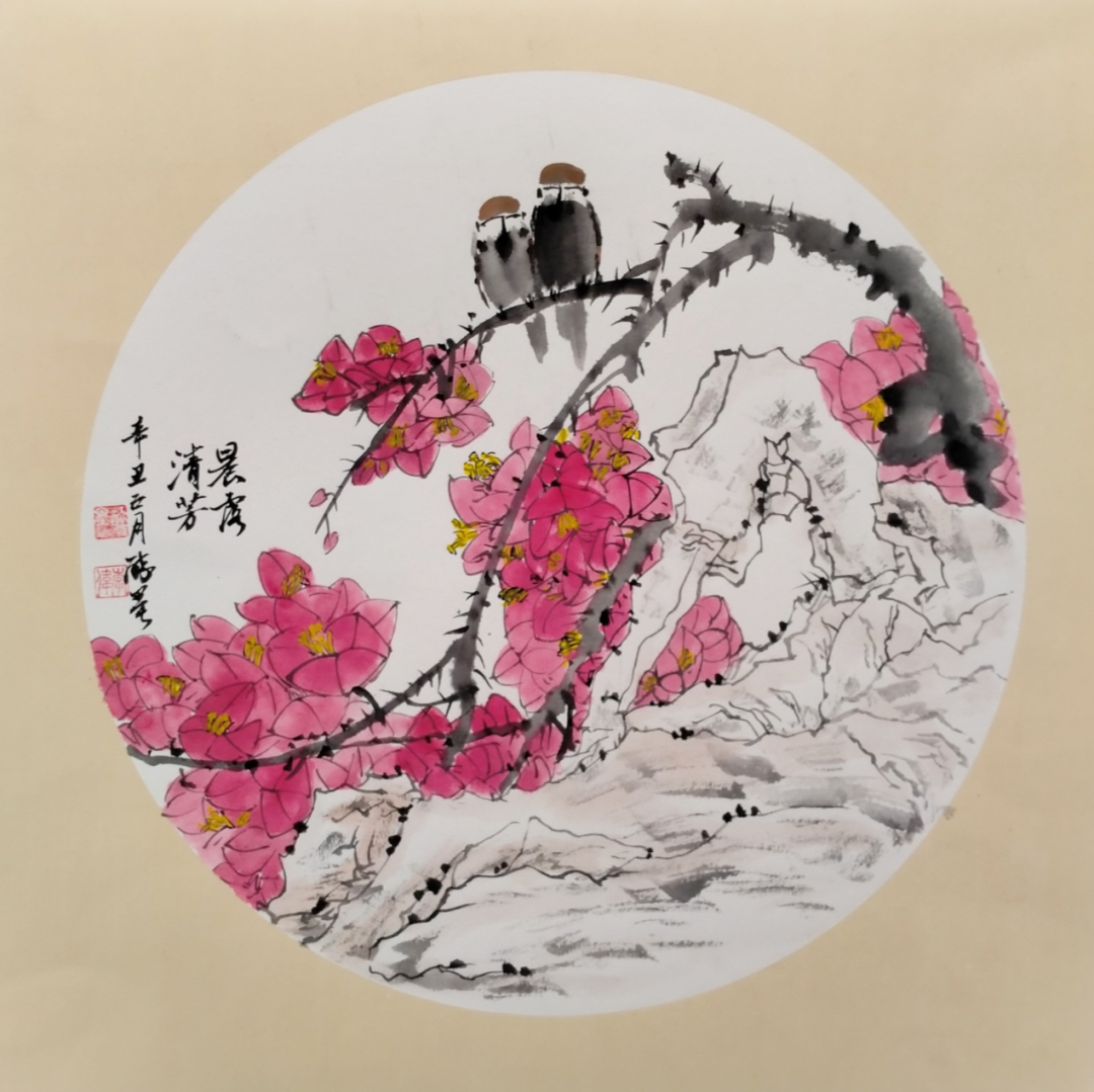 2020年香港国际书画大赛国画作品《花荫对语》评为优秀作品;