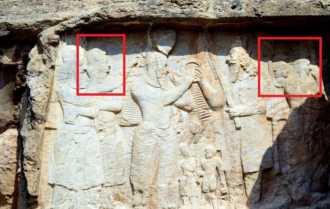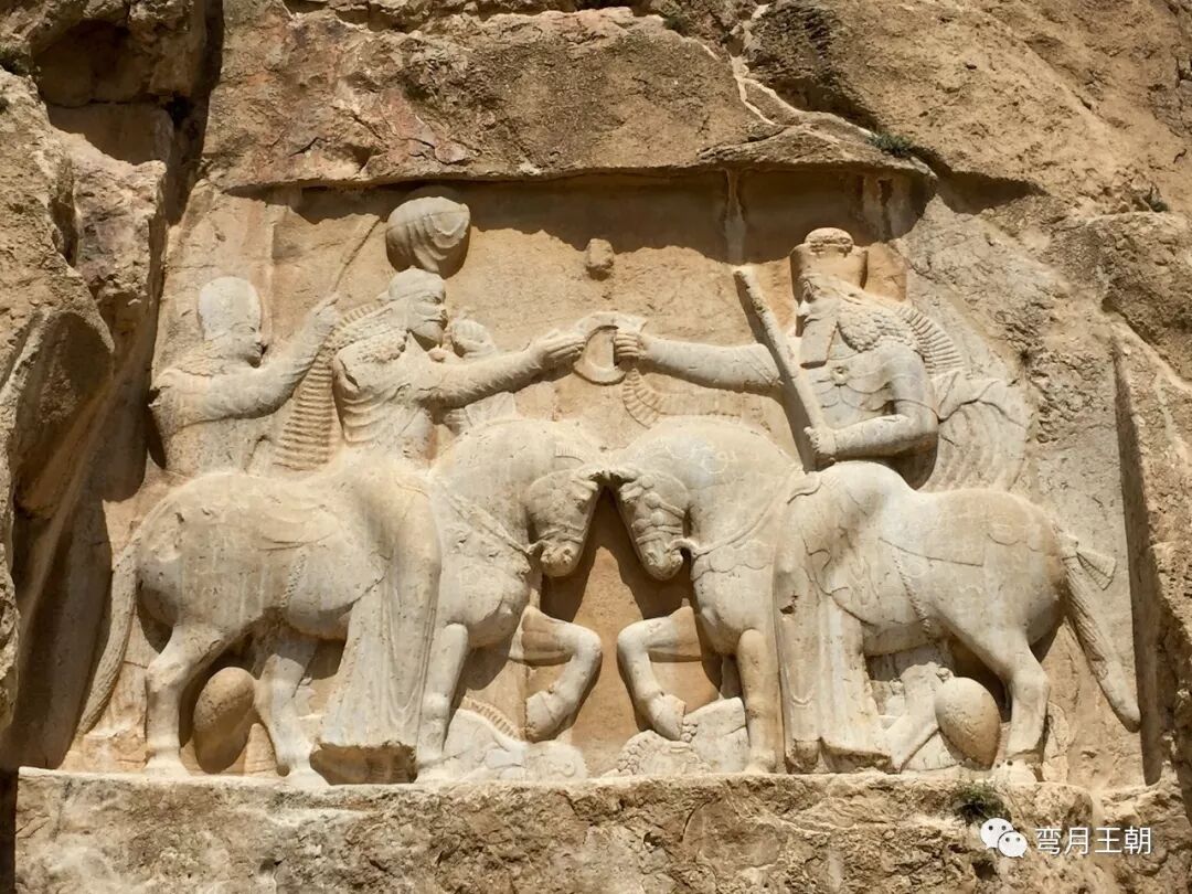 还有一类比较时髦的是所谓“弗里吉亚式帽子”,拙作《春节特辑 | 一顶戴了三千年的“自由帽”》中有介绍其源流。不过萨珊波斯贵族喜欢搞“怪”、热衷标新立异的毛病似乎也蔓延到了这里。于是有的“弗里吉亚式帽子”就变异成了“马头帽”、“鸡头帽”(其实大概是格列芬的头)等等。同样,在摩崖石刻上描绘的大臣也戴着这类帽子。