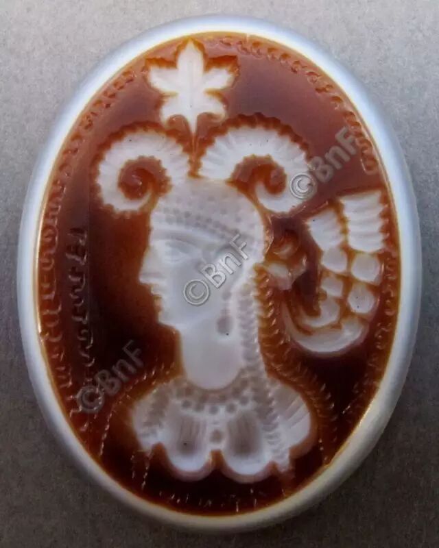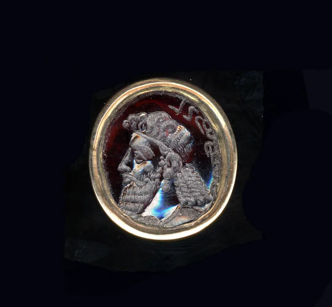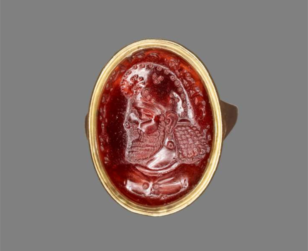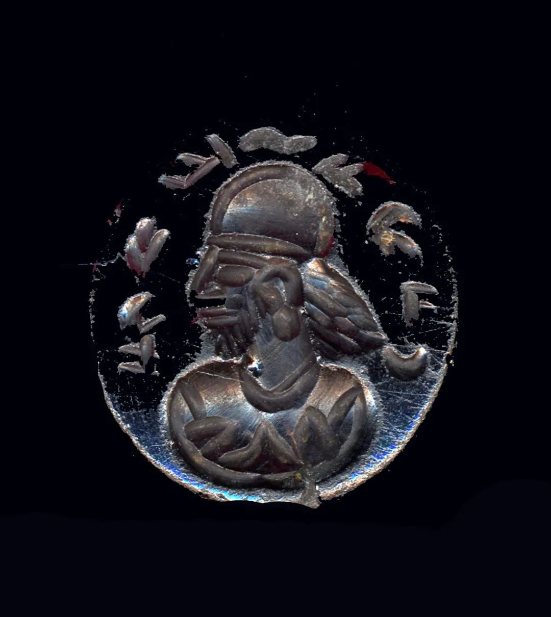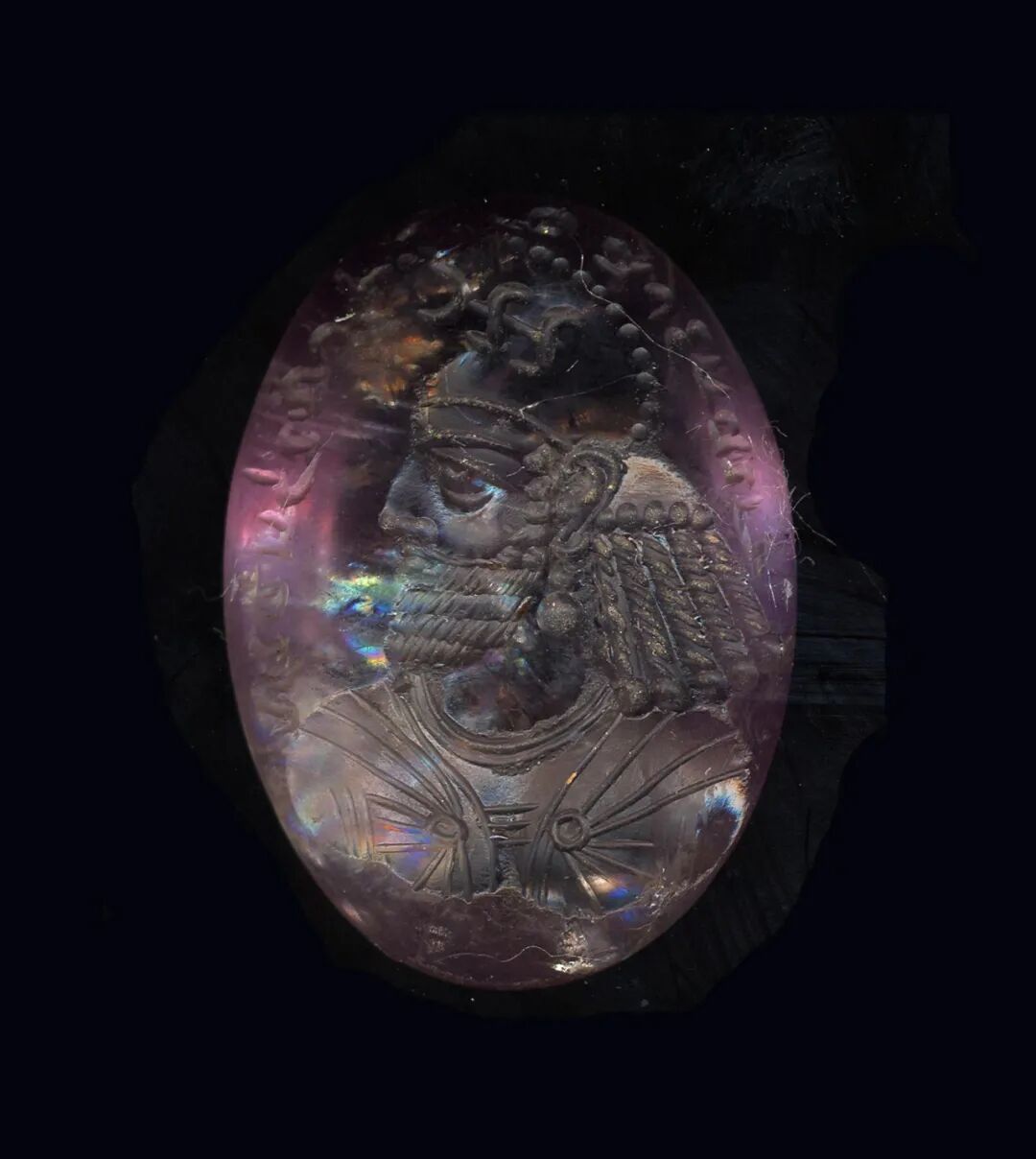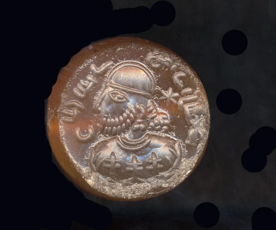 作为参考,可以对比同时期匈人的印章。显然,一些匈人的贵族接受了萨珊波斯浮夸的服饰风尚,同时他们又喜欢描绘正面或者3/4正面的人物,于是我们看到了更为夸张的花饰头冠。