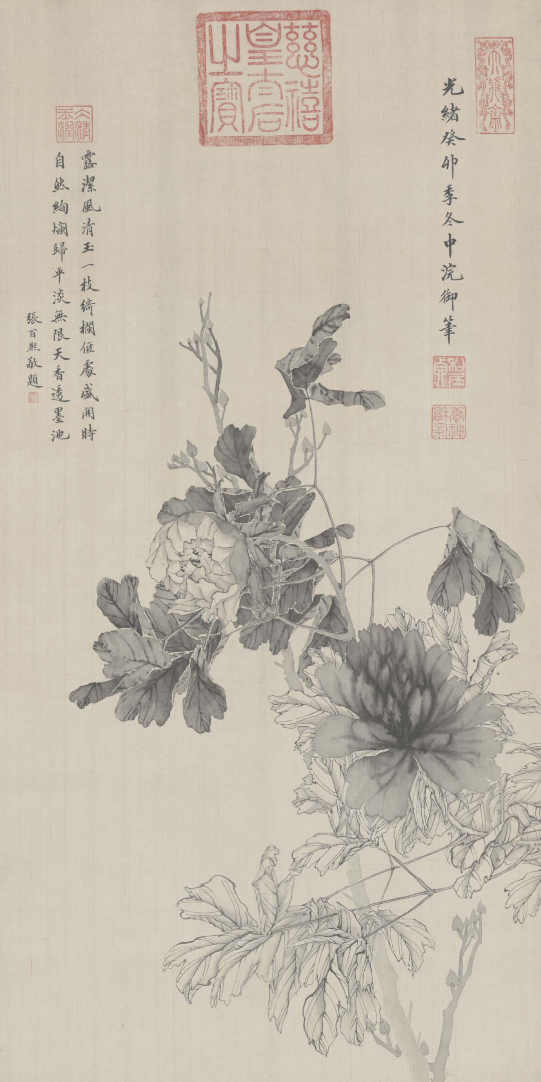 西太后当然不是什么对画作颇有研究的大家,沉迷权术的她也不可能在画作上那么高产(粗略统计,仅慈禧款的《牡丹图》就不下百件)。这些赏赐给皇亲国戚、王公大臣的画作,几乎全是由宫掖画家或宫廷如意馆画家为其代笔创作的。