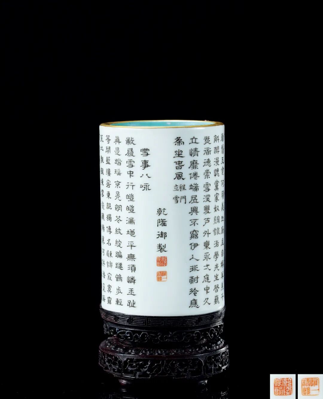 清乾隆 御制墨彩「雪事八咏」御题诗小笔筒