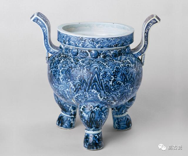 明永乐 青花海水江崖纹大香炉 高60厘米 口径39厘米 1994年出土 景德镇市陶瓷研究所藏
