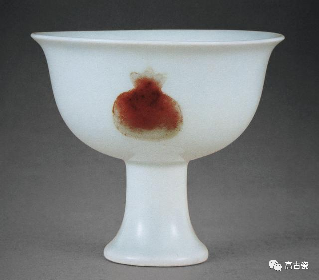 明宣德 釉里红宝烧三果纹高足杯 1982年出土 景德镇市陶瓷考古研究所藏