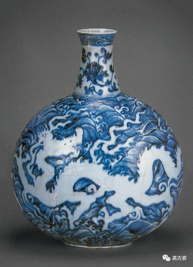 明永乐 青花海水白龙纹扁壶 1994年出土 景德镇市陶瓷考古研究所藏