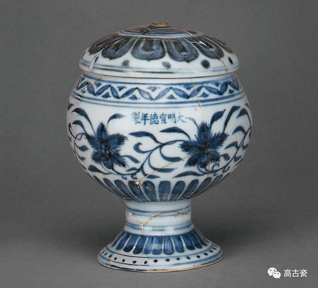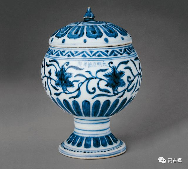 明宣德 青花缠枝萱草纹香宝子 1993年出土 景德市陶瓷考古研究所藏