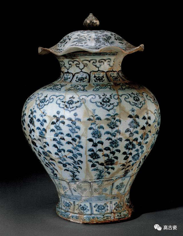 明洪武 青花花卉纹瓜棱石榴尊(残) 故宫博物院藏