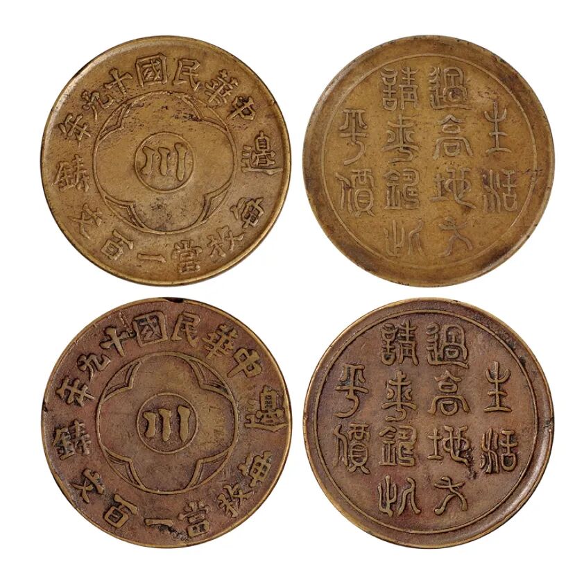 民国十五、十九年四川省造中心“川”字边铸一百文铜币各1枚