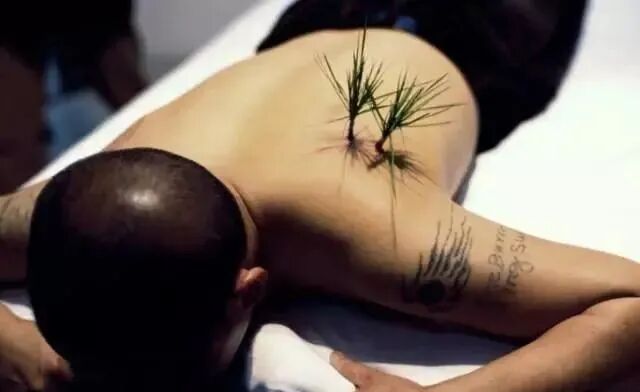 在2000年上海的《不合作方式》展览上,杨志超在不打麻药的前提下,让医生将自己的后背划开,然后“种”上了两棵新鲜又脆弱的青草,整个过程下来看起来既痛苦又暴力。杨志超需要被人按住才能完成这一开刀过程,同时还有一阵阵快门声作为这场手术的BGM,围观群众们拿着手中的相机,将这一过程拍了下来。