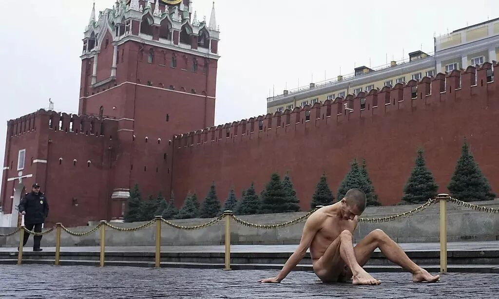 2013年11月,俄罗斯艺术家彼得·帕弗伦斯基以一场反对俄国贵族独裁的行为表演吸引了全世界的关注。他赤裸着身体,将自己的睾丸固定在莫斯科红场的地面上,这场行为表演持续了1个半小时。帕弗伦斯基认为这种表演是“一种对政治性冷漠的隐喻,一种政治性冷漠,以及现代俄罗斯社会的宿命论。”