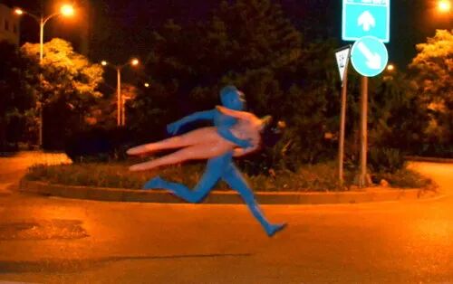 看完上面这位叔的行为艺术,是不是觉得他很会玩?再看看下面这位老哥的行为艺术,它不仅会让你觉得这位艺术家很“会玩”,可能还会让你下体一疼。