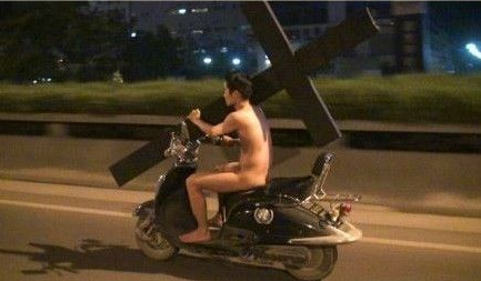 在2013年的3月到5月,深夜中的北京市望京街道,时不时就会冒出一个裸奔的男子,他有时骑着小摩托、有时扛着十字架、有时抱着充气人模,这个裸奔的男子就是艺术家厉槟源。他裸奔的照片被人们拍了下来,并上传到网络,瞬间引发热议。