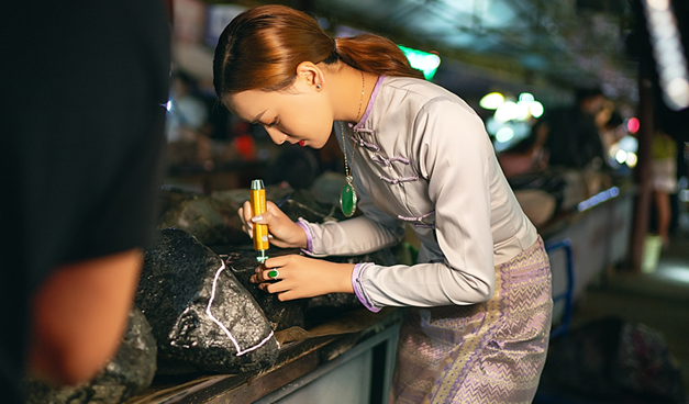 大家好,我叫李玉儿,从爷爷那辈起,就是一个在一线亲自挑選翡翠原料几十年的人,而我负责为这些宝贵的“石头”设计,让它焕发不一样的光彩。时至今日,我仍然坚持亲赴缅甸挑石头、开料,在一线销售市场摸爬滚打见过形形色色的人。