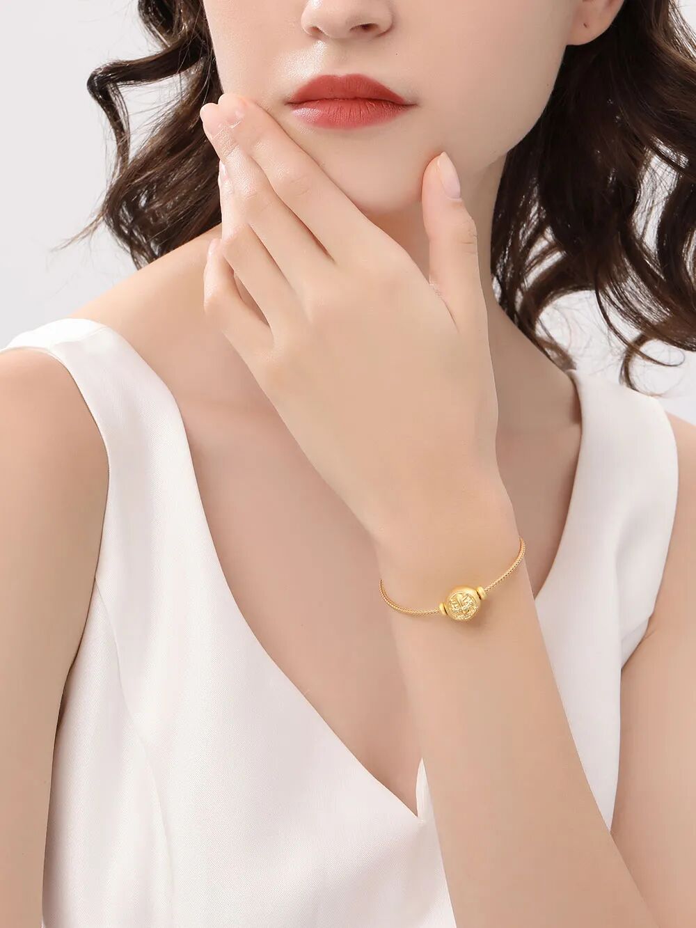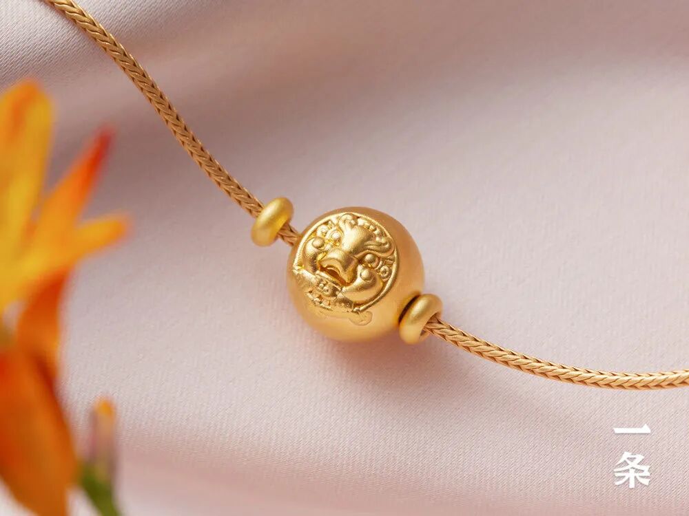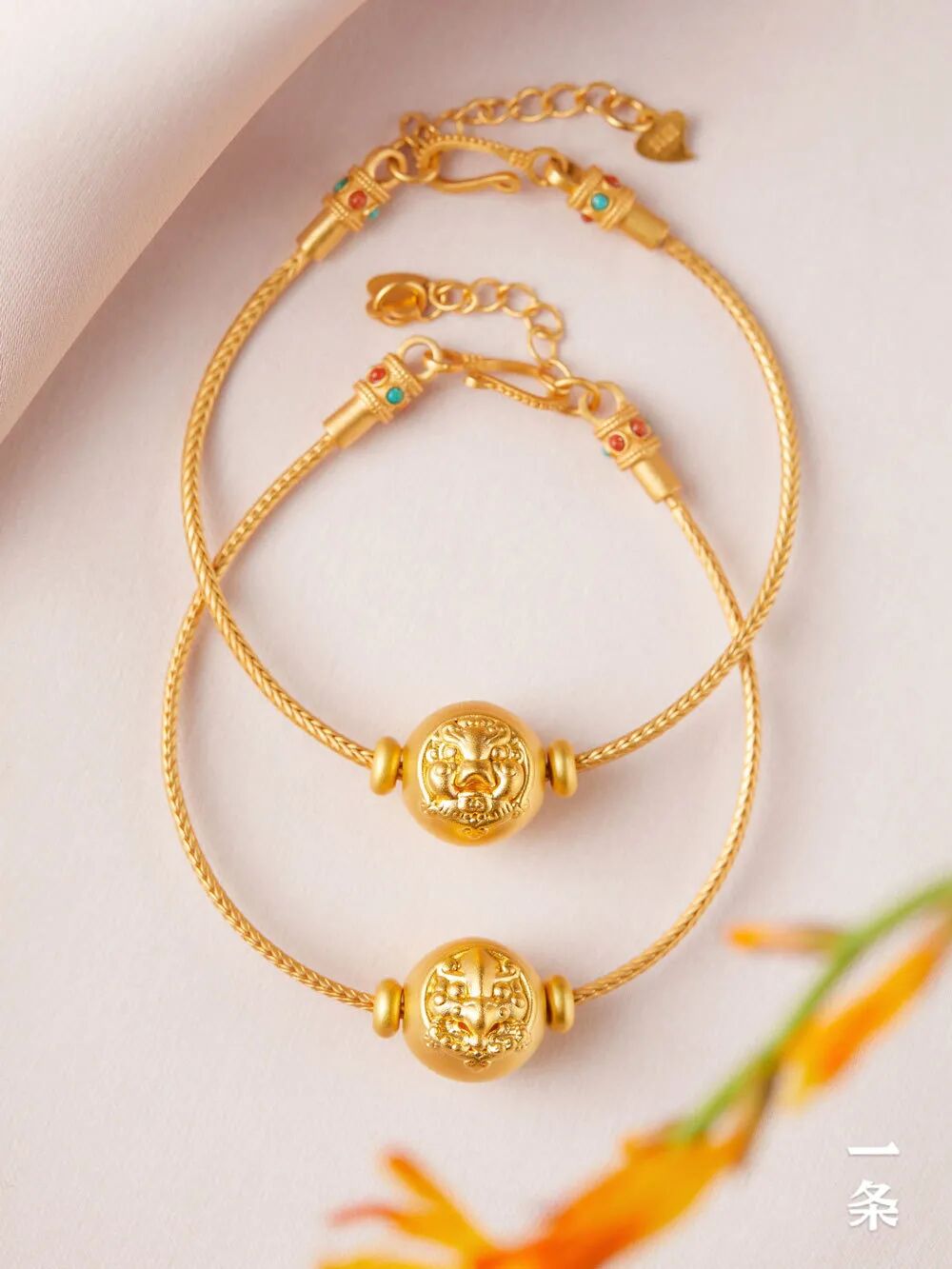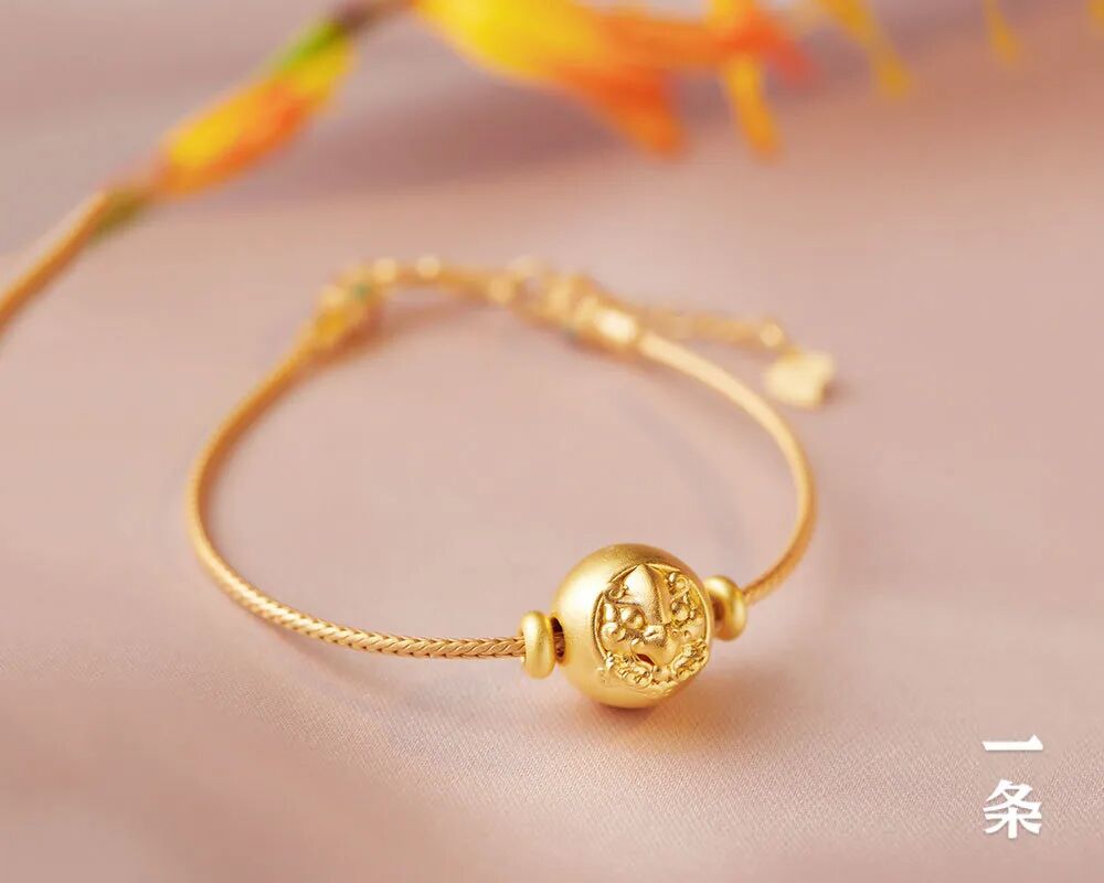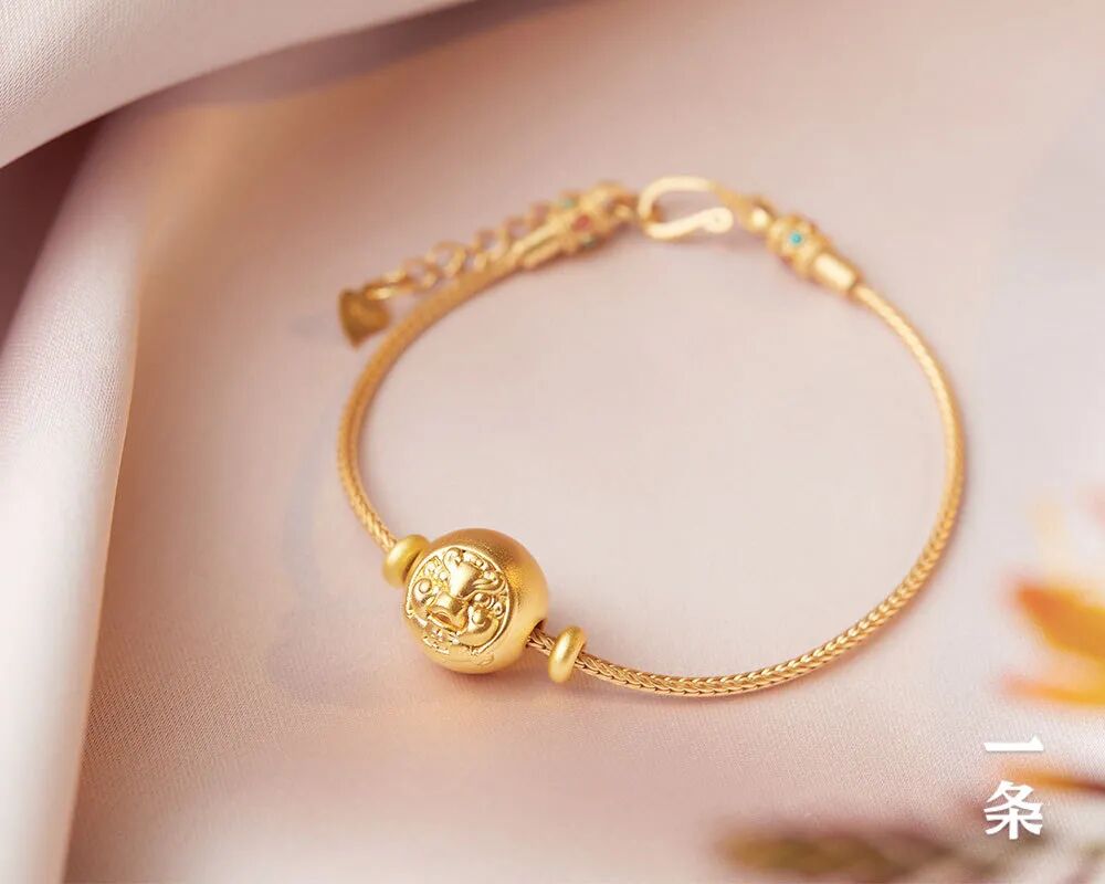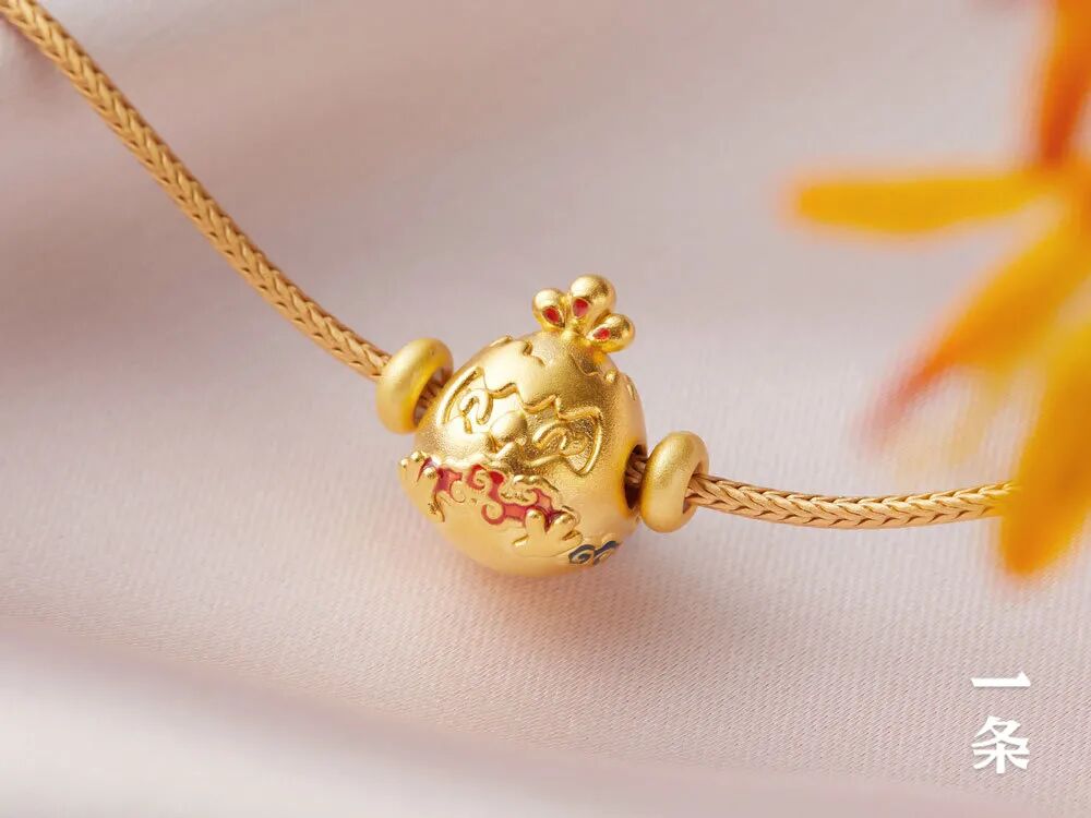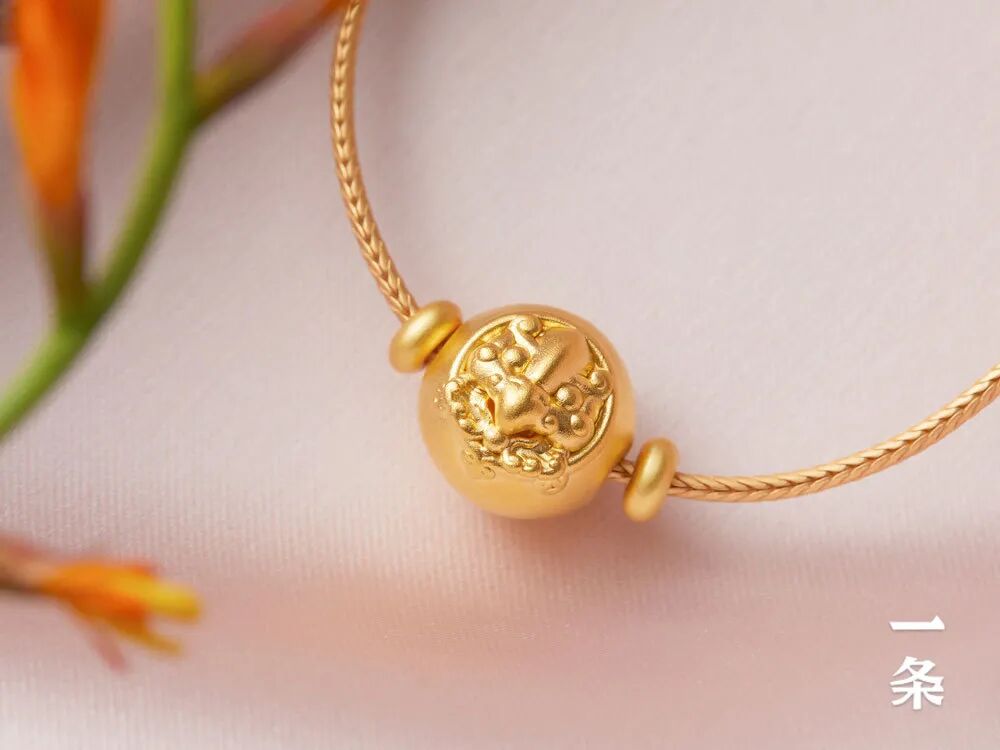 每款手链都会附赠金色隔片,让足金坠子不会随意滚动,避免磨损。