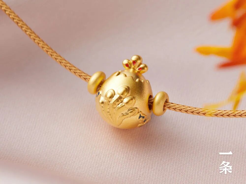 3D硬金工艺,结合精工雕刻,不仅使得坠子立体感更强、纹理更精致,还大大提升了黄金的硬度及耐磨性。