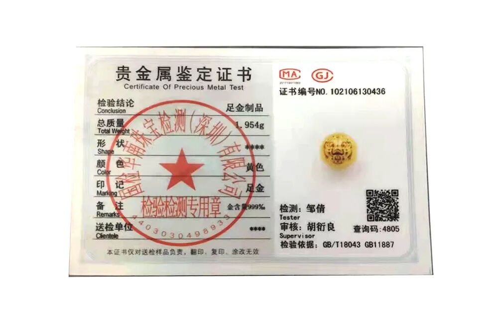每条手链都附带鉴定中心出具的《贵金属鉴定证书》,确保真金。