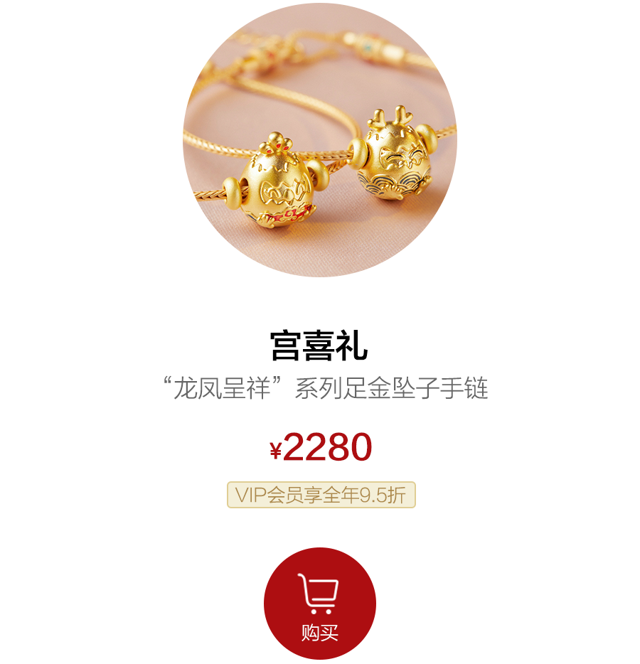 “龙凤呈祥”系列足金坠子手链,现一条生活馆有售▼