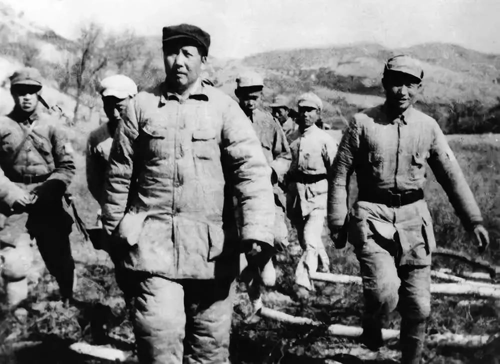 1936年,毛泽东到达陕北,一场大雪过后,毛泽东欣赏北国风光,写下《沁园春·雪》,“江山如此多娇,引无数英雄竞折腰。惜秦皇汉武,略输文采;唐宗宋祖,稍逊风骚;一代天骄,成吉思汗,只识弯弓射大雕。俱往矣,数风流人物,还看今朝”,表露出气吞山河的信念。1936年7月,毛泽东接受美国记者埃德加·斯诺的采访,头戴八角帽的毛泽东英姿勃发。1937年6月,毛泽东与朱德在延安接受美国进步女作家史沫特莱的采访。毛泽东曾幽默地对朱德说:“你是朱 ,我是毛 ,我是你身上的一根毛,没有朱,哪有毛?”可见二人深厚的革命友谊。1943年,在中共中央招待陕甘宁边区劳动英雄大会上演讲。