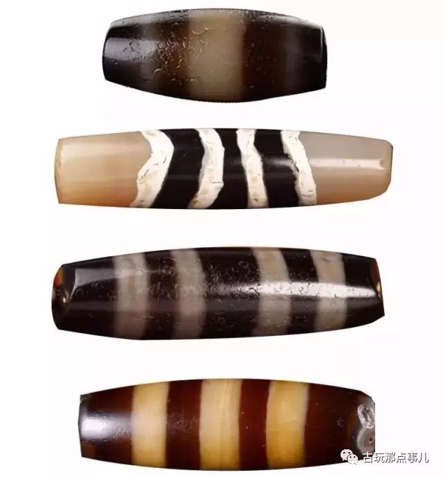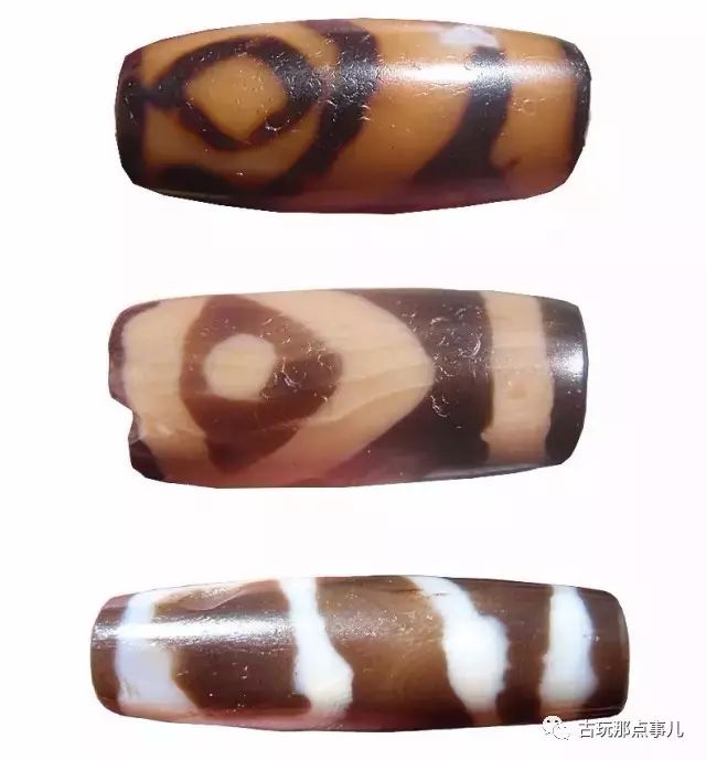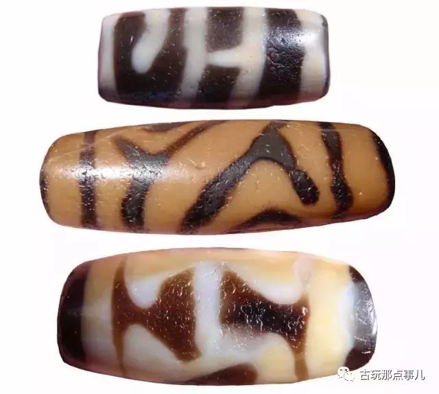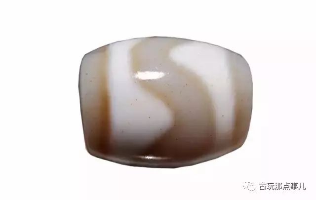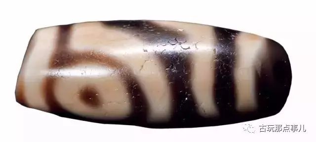 我们所认为的标准型至纯天珠,它具备以下几个特点,石头的材质是一种浑厚的乳白色的,不透光的,镶蚀线纹路清晰,边界分明略微有一些过度,这几个特点也是目前大家所公认的。(这类珠子发现于西藏,尼泊尔,印度,不丹)