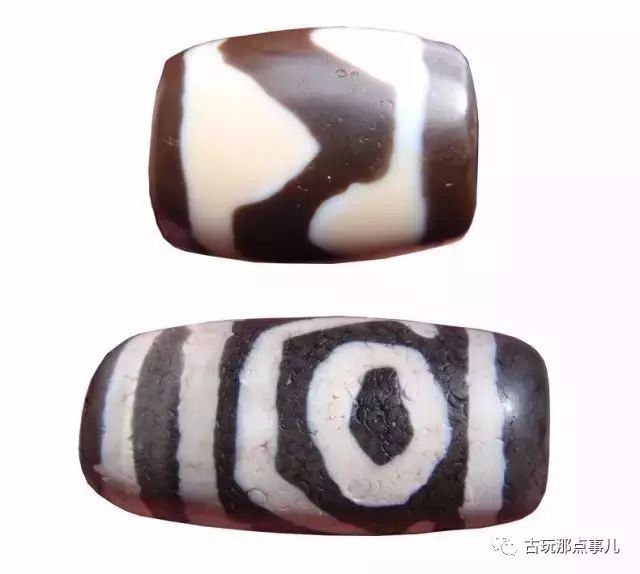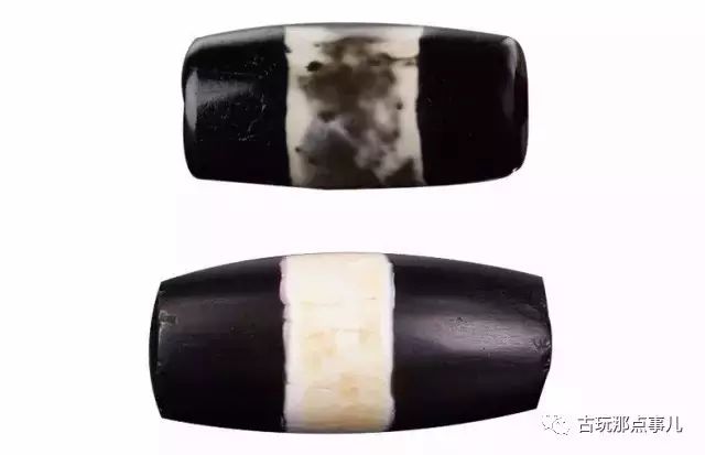 现在有两个是我们认为的至纯天珠,但是按照这个标准,只有下面的两颗才符合,假如这是两颗都是完美的天珠,我相信大多是人都会选择上边那一颗,因为它更黑白分明一些。