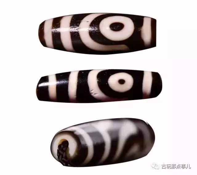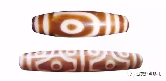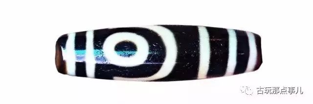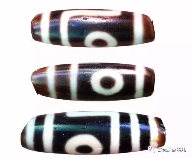 相同的工艺在至纯天珠中也可以见到,下面的两颗至纯天珠,白色部分同样会有凹陷的感觉和上面的线珠不同的是两眼天珠用的石头是乳白色的,表层的白线和黑色部分都是镶蚀统一完成的,而线珠只有白线是镶蚀的。