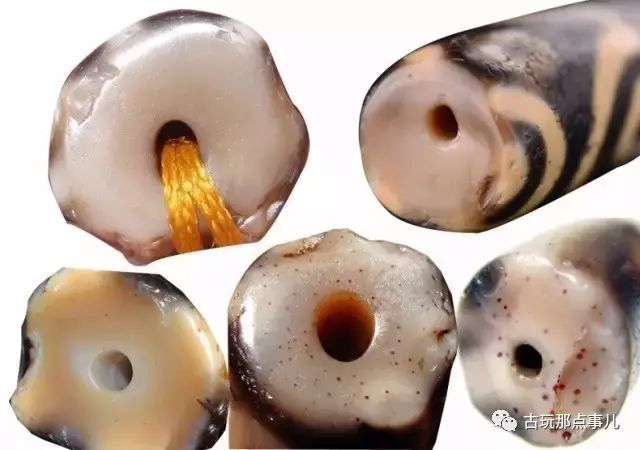 上边的个图,我们可一个看到珠子的实体颜色是乳白色,在台湾天珠界,曾经把天珠孔道是否为乳白色作为是否是至纯天珠的标准,这在林东广先生的书中是有提到的。以这个标准,很多的措思天珠都会列入这个范围,这个标准也是值得商榷的。