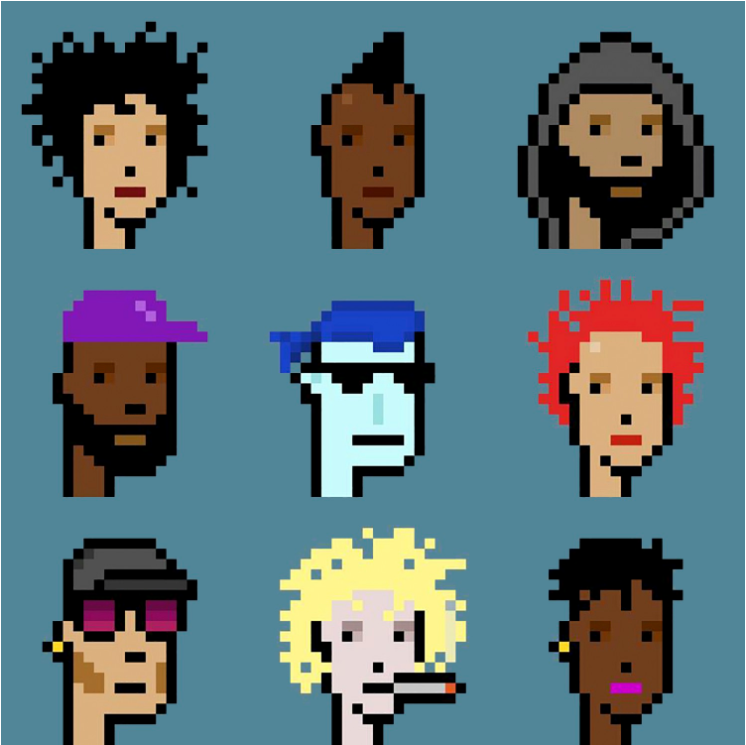 CryptoPunks是一系列24x24, 8位像素风格的艺术头像,其中不乏一些不合时宜以及古怪的元素。总共10,000个, 而每个都有自己独特的样貌特征和配饰组合。这要归功于不同的、随机生成的特征,从眼镜到帽子再到连帽衫。其中有 6,039名男性朋克和3,840名女性朋克。696人涂了口红,303人留有络腮胡。有286个戴3D眼镜,128个红脸庞的朋克,94个扎辫子,78个露牙齿和44个戴豆豆的朋克。还有8个没有明显特征的朋克,他们有时被称为创世纪朋克。