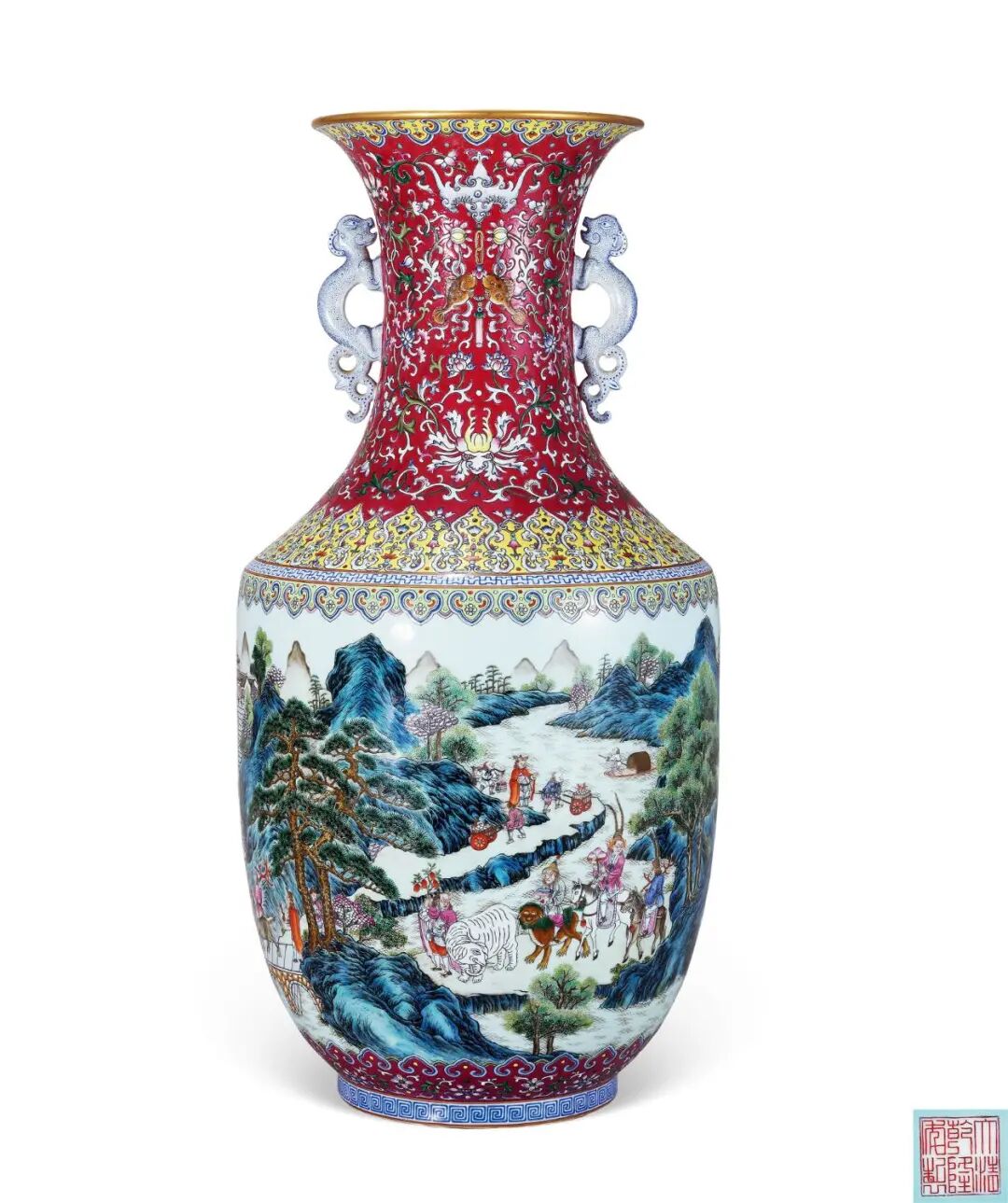 瓷器向来是保利的经典版块,历来精益求精,今秋保利在瓷器项目上延续着一直以来的气势,一件清乾隆 御制胭脂红地套炉钧釉「太平有象」转心瓶拍前估价待询,现场以4500万人民币起拍,叫价以200万或300万一口迅速攀升,一番激烈的竞价后以7150万人民币落槌,逾8222万人民币成交,荣登今季秋拍最贵瓷器榜单第一位,亦是全球第三贵转心瓶!![]()
