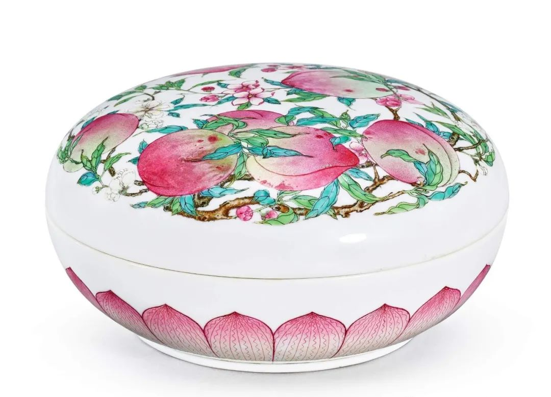 从年代分布上看,目前行业高端市场中以“基数”较大的明清瓷器为主,而清三代瓷器在本季TOP30成交中占有19席,是实打实的“市场宠儿”,其中,在本季TOP10中占据5个席位的乾隆瓷更是拍场里的重中之重,特别是前文提及的“乾隆大器”,已几乎成为高价瓷、天价瓷的代名词。清三代瓷器市场中的高价成交,彩瓷占据着无可比拟的地位!本季香港苏富比秋拍一件粉彩寿桃盖盒图饰流畅奔放、精致无双,以3466万港币成交价位列瓷器成交第4名,更有洋彩“八蛮进宝”双耳大瓶、洋彩百鹿尊等精品彩瓷成绩喜人。![]()