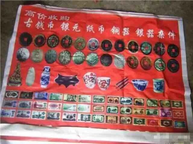 &每个城市都有打着这种广告的古玩店,他们都是收古钱币和老物件。