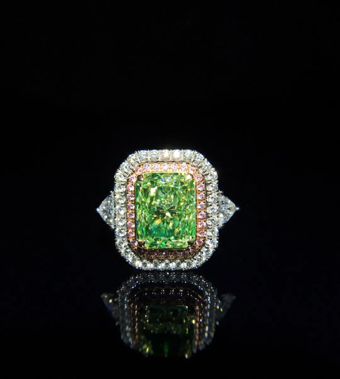 1.1克拉浅粉色1.11克拉浅黄绿色钻石戒指